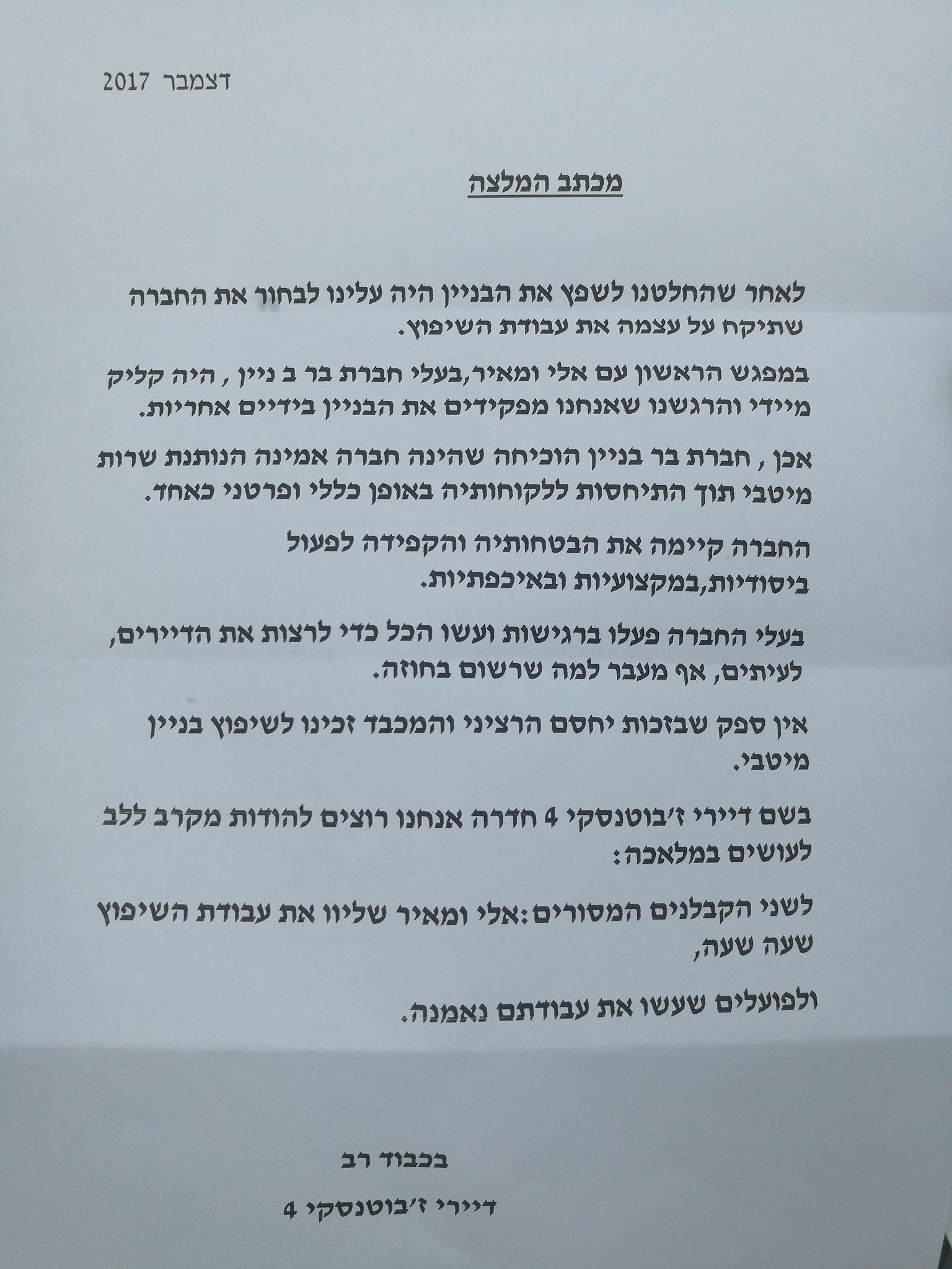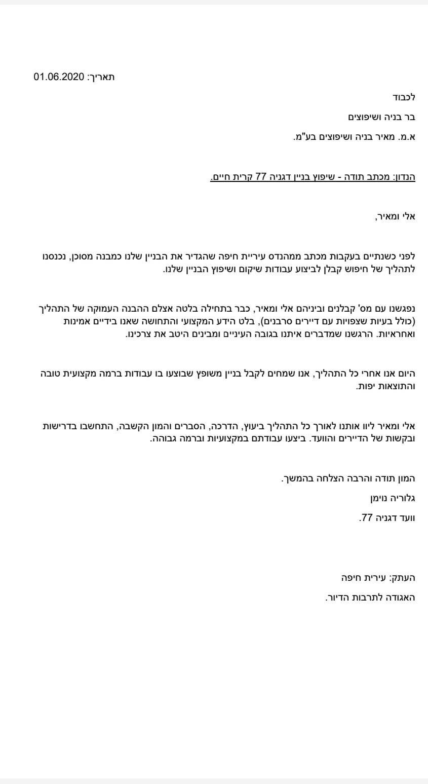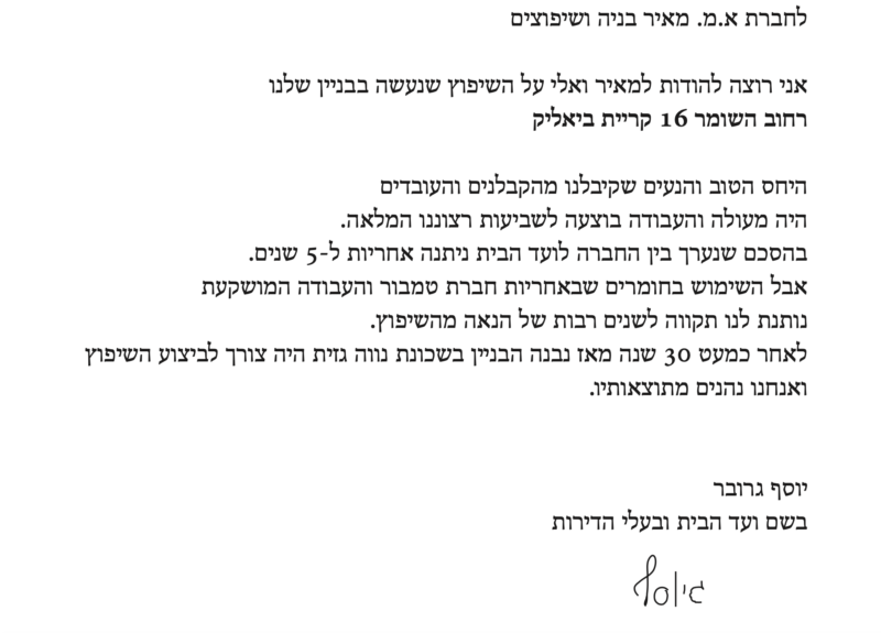 בניה זה מערכת יחסים, אתם נותנים בנו אמון, אנחנו נותנים מעצמנו עד הסוף ואת התוצאה אתם רואים בסוף העבודות.