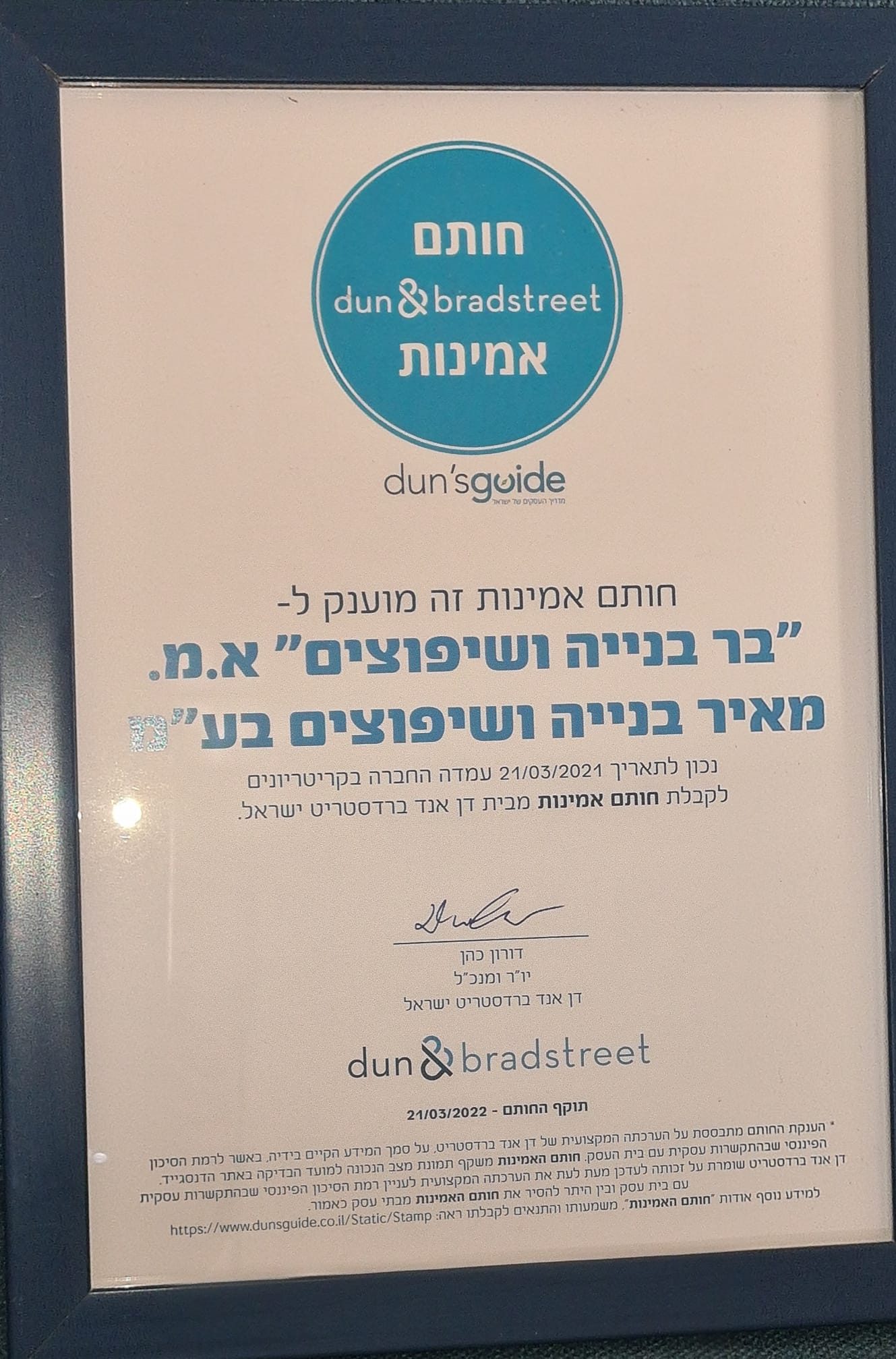 כבר למעלה מ-30 שנה חברת שיפוצים בר בנייה בונים בכול הארץ, בתים פרטיים ושכונות קוטג'ים, מבני מגורים, מוסדות, מפעלים ובתי עסק יצאו תחת ידינו והכל מאהבה למקצוע. אנחנו מאמינים שגם התיקון הקטן שעשינו עבורכם לשביעות רצונכם, יהפוך אתכם ללקוחות נאמנים היודעים להעריך שירות טוב.