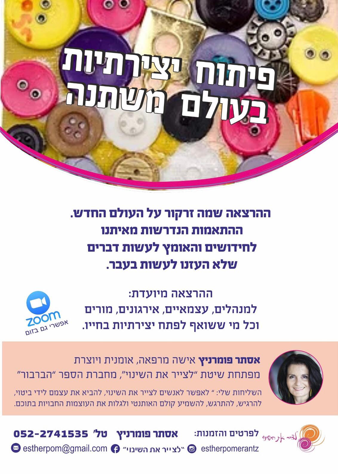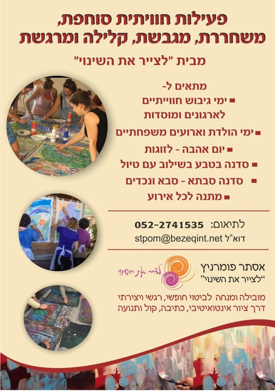 -סדנאות חד פעמיות – מותאמות לארועים מיוחדים, לטיולים בטבע- בארץ ובחו״ל.