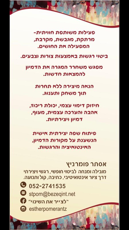 מטפלת פסיכוקריאטיבית (גשר בין רגש ליצירה).