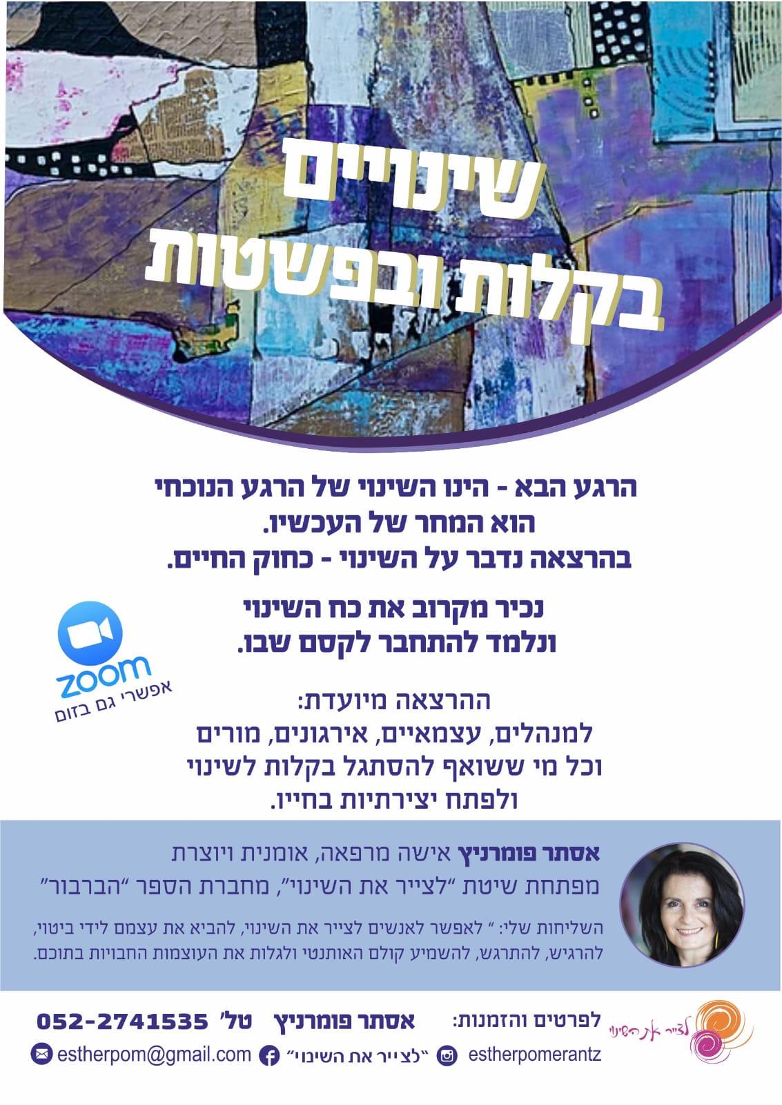 *מרצה בפורומים שונים – הרצאה מעוררת השראה בעקבות “הברבור״- ספר אוטוביוגרפי הנותן כוח לאנשים במצבי דחק ושינוי.