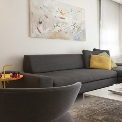 דירה קטנה ואלגנטית, שתוכננה בדגש על נוחות ובסגנון על-זמני. הבחירה בפריטי ריהוט עדכניים בקווים נקיים הפכה אותה לאי של שקט אליו תמיד נעים לחזור.