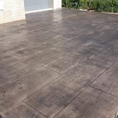 דק עץ גושני רוחב 40 ס"מ בטון מוטבע דמוי עץ
