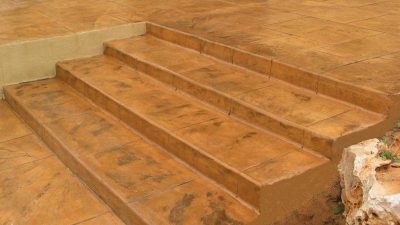 מדרגות בטון מוטבע בומנייט יציקה במקום, מדרגות בטון מוטבע ,המדרגה הרחבה והשביל בגוונים זהים.