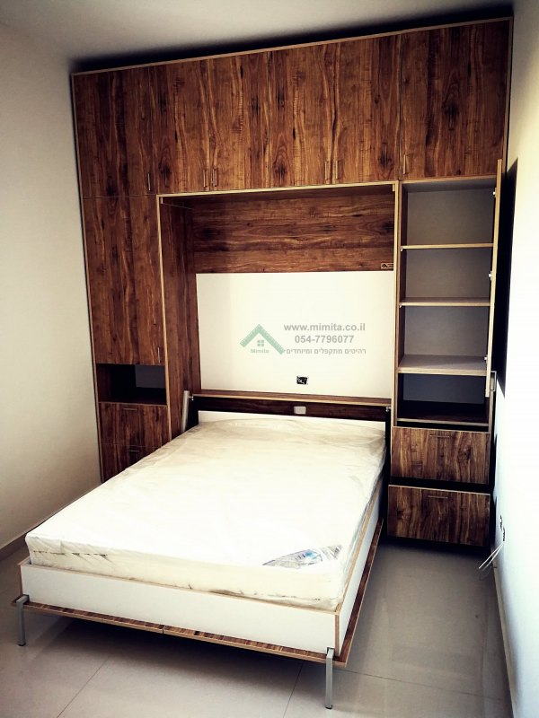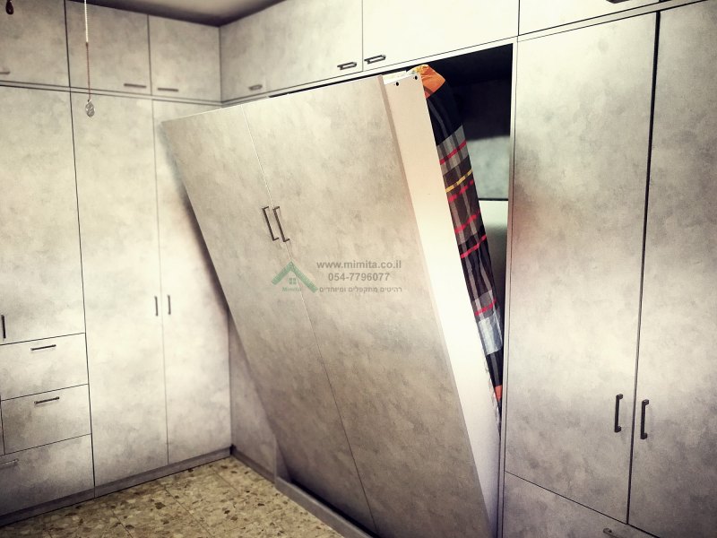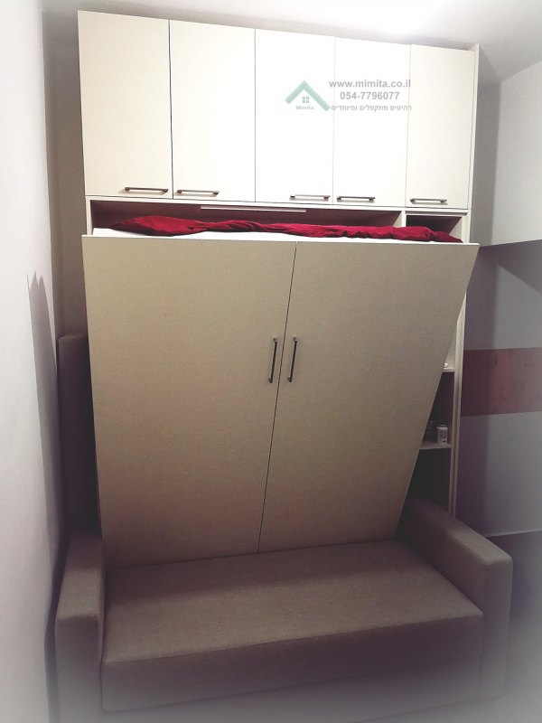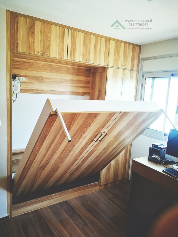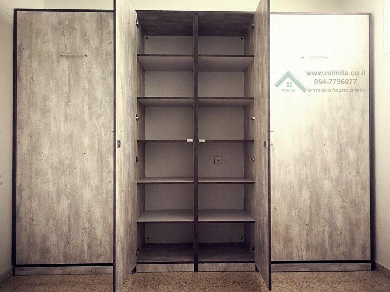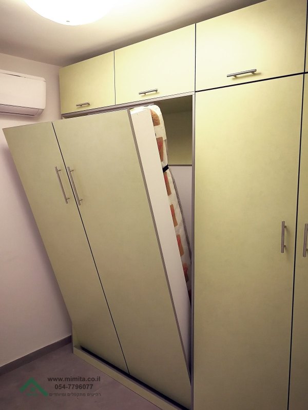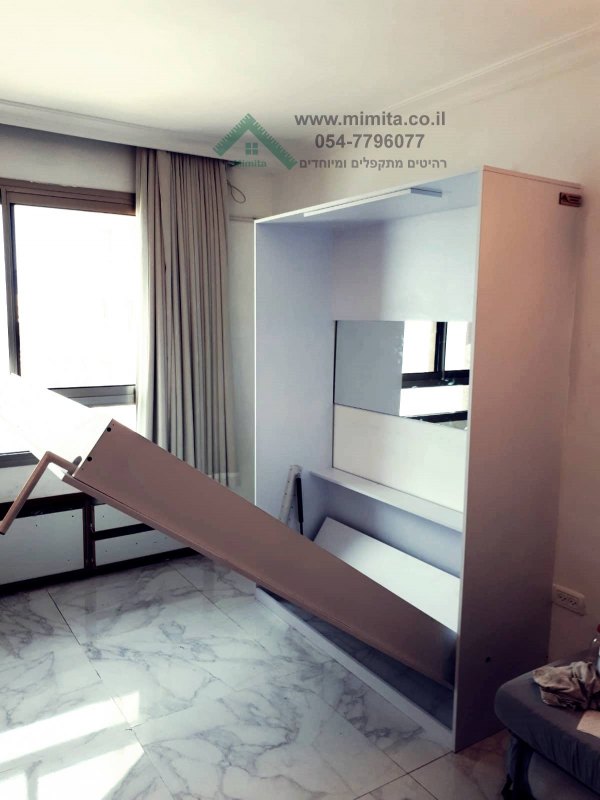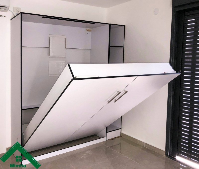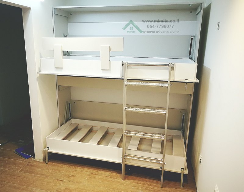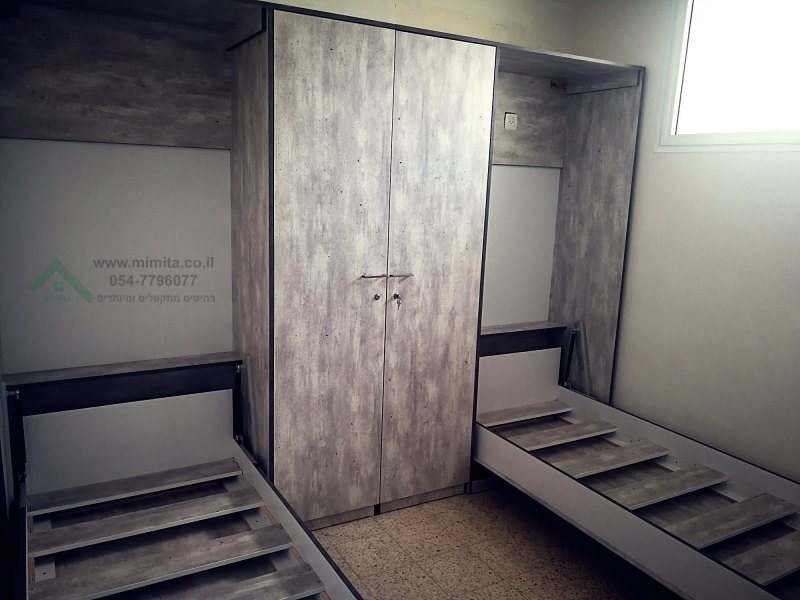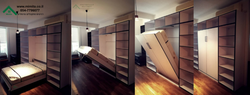 ארון מיטה, מיטות קומתיים מתקפלת, שולחן סלון מתקפל, ארונות הזזה נסתרים.