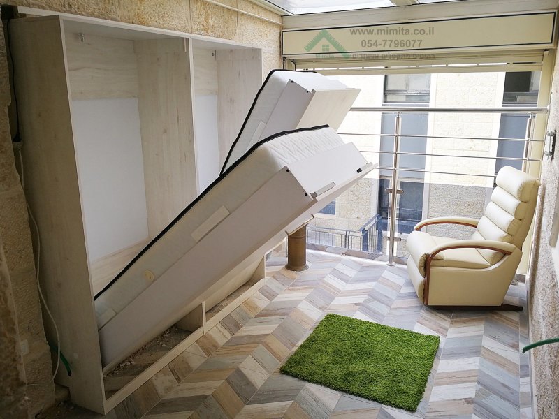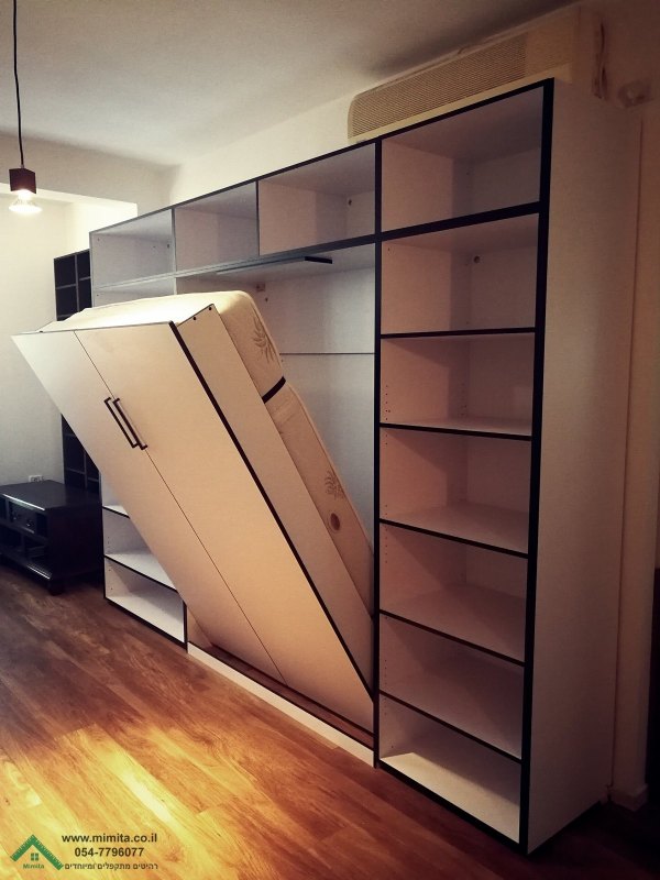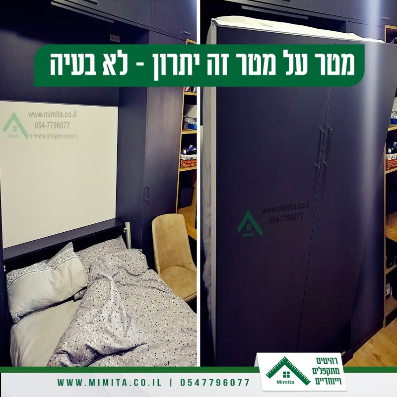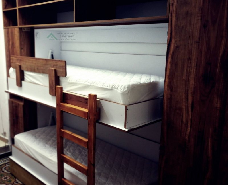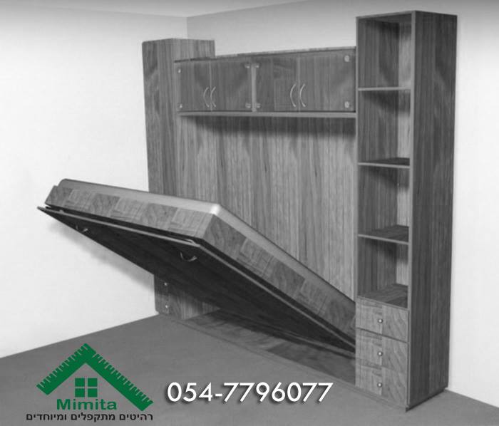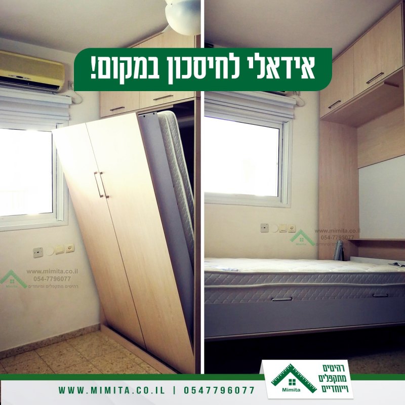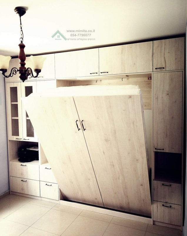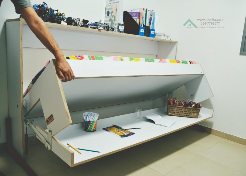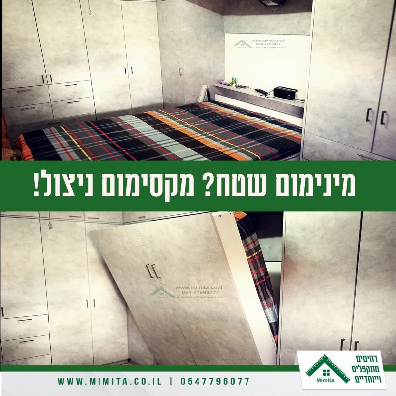 ארון מיטה, מיטות קומתיים מתקפלת, שולחן סלון מתקפל, ארונות הזזה נסתרים.