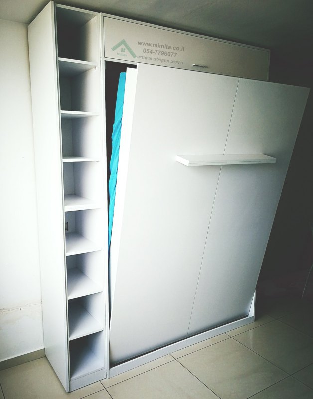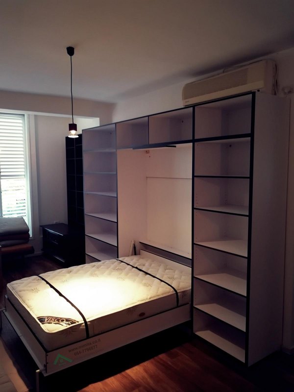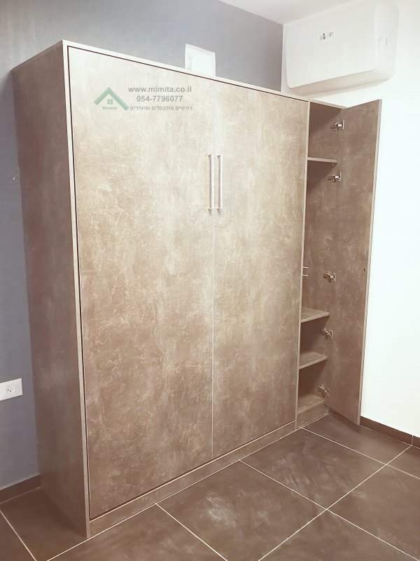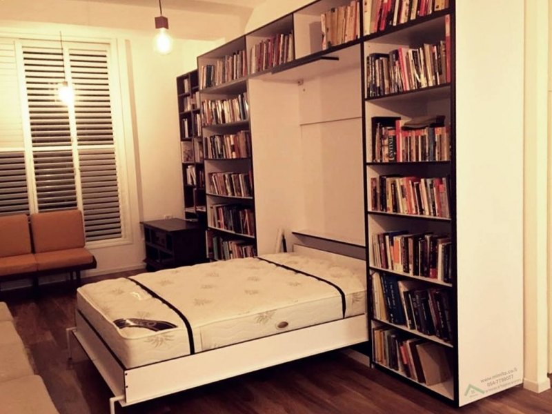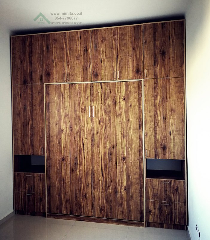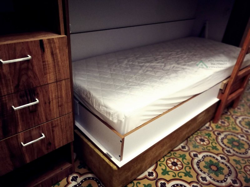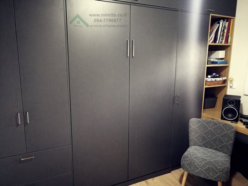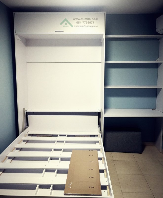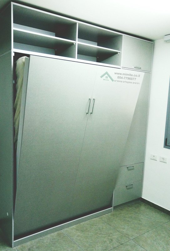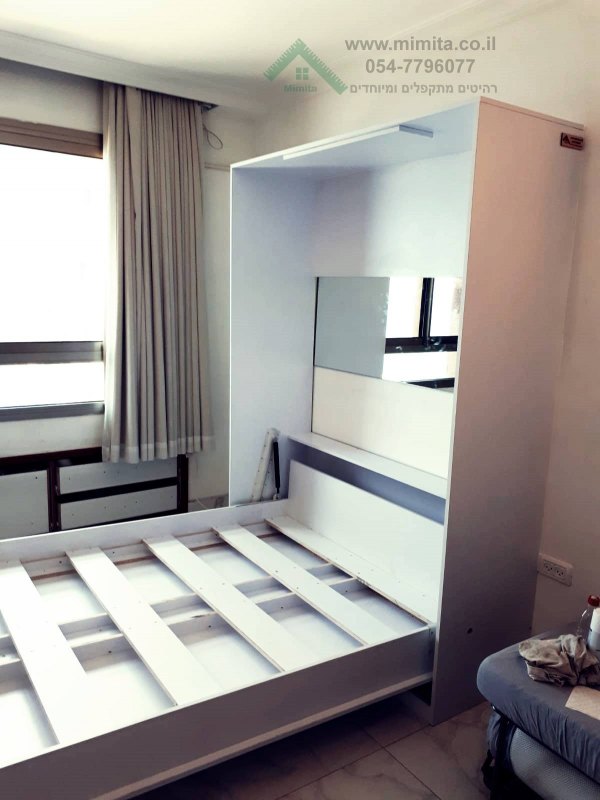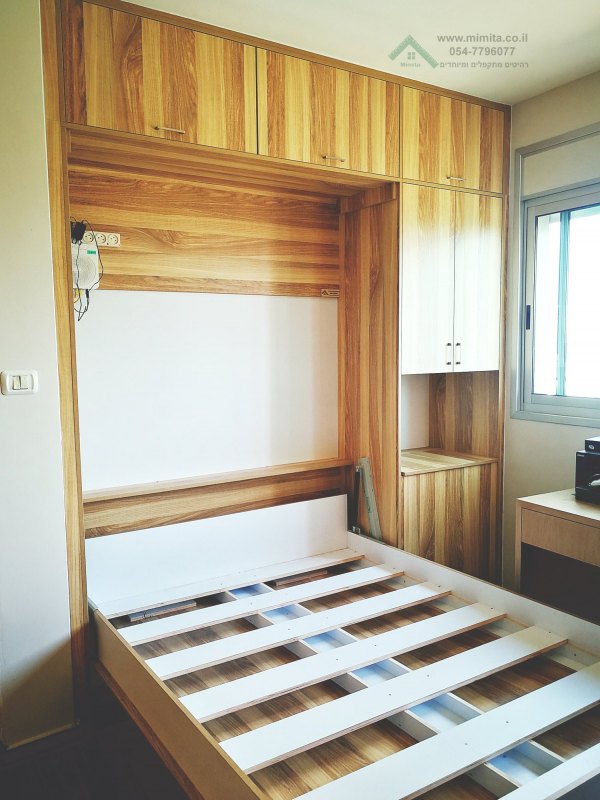 ארון מיטה, מיטות קומתיים מתקפלת, שולחן סלון מתקפל, ארונות הזזה נסתרים.