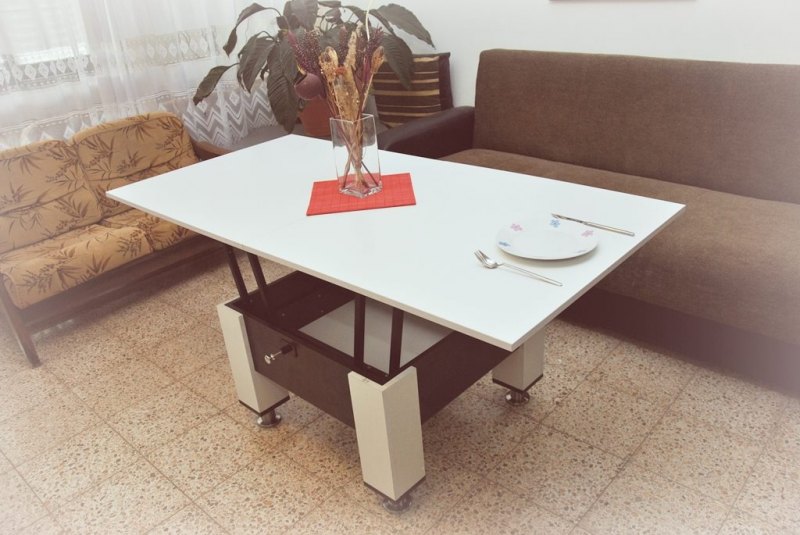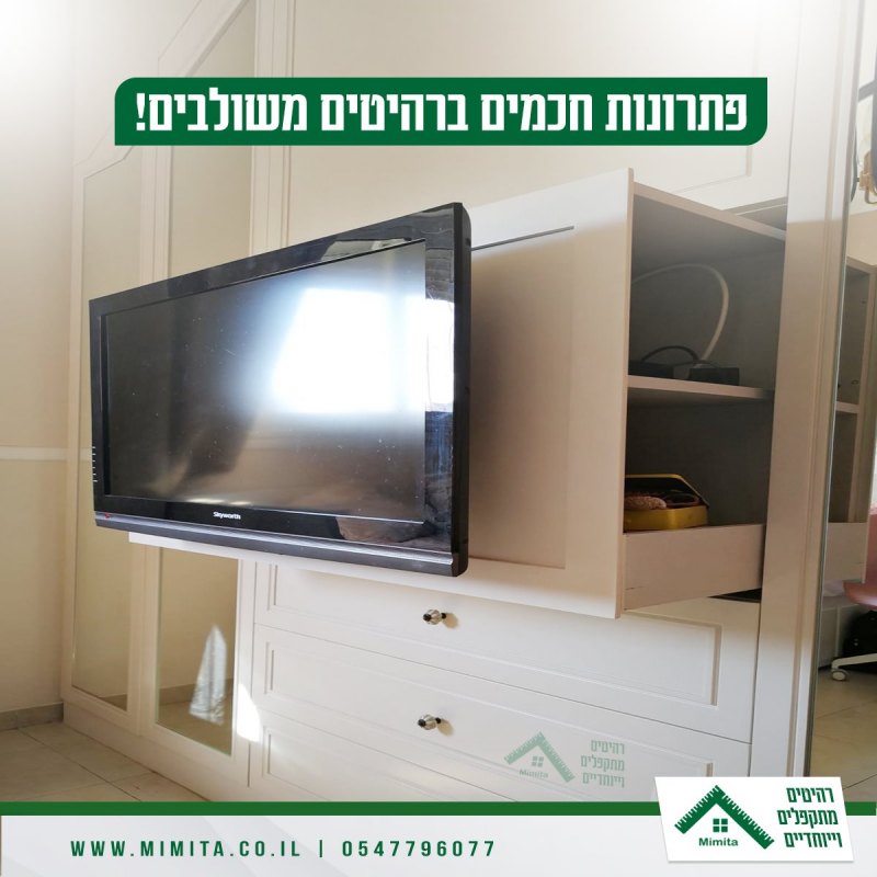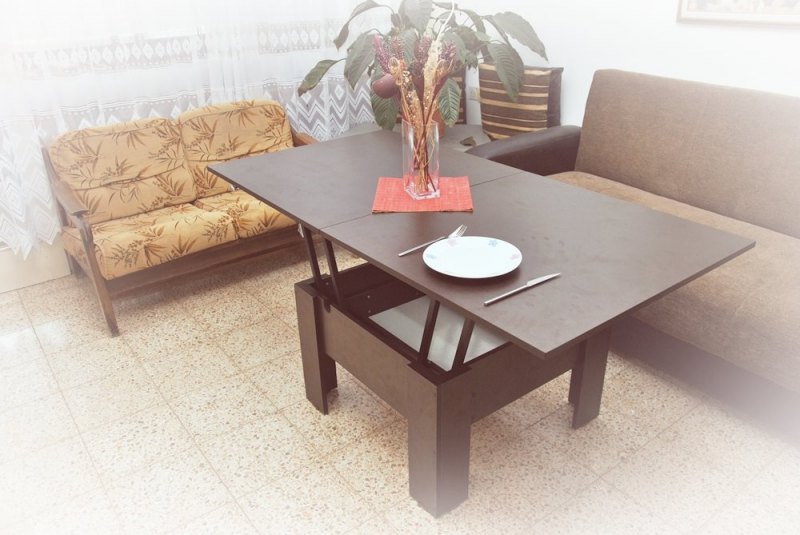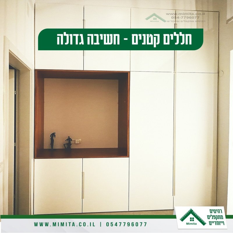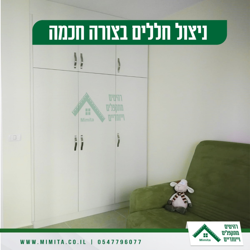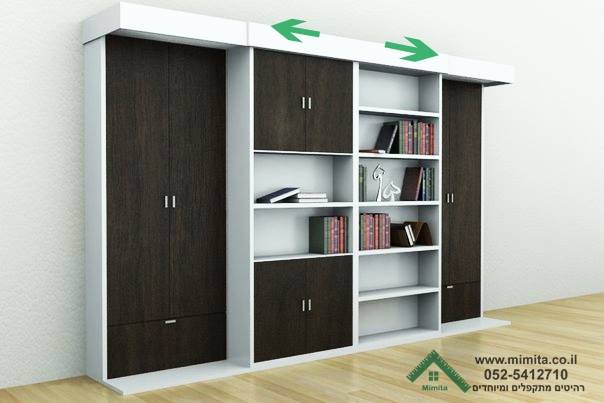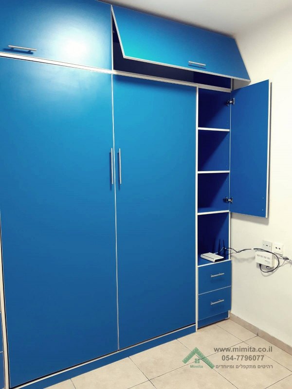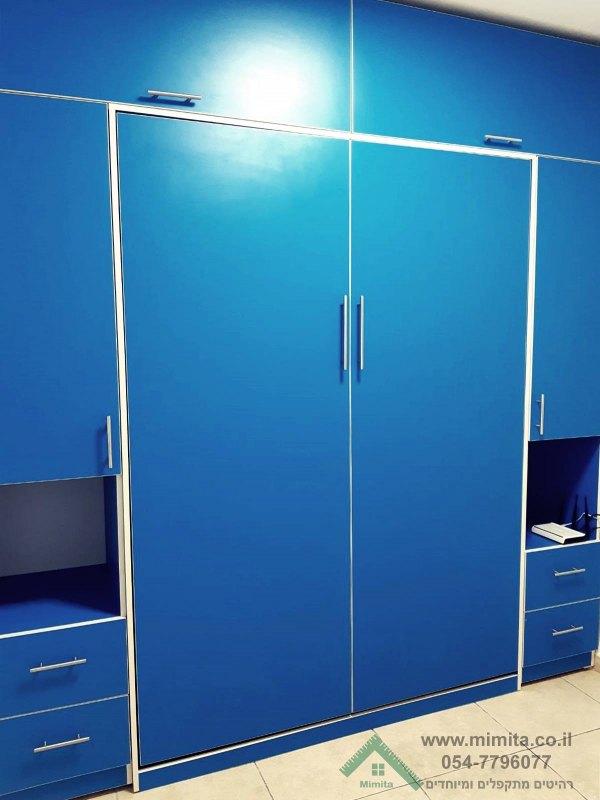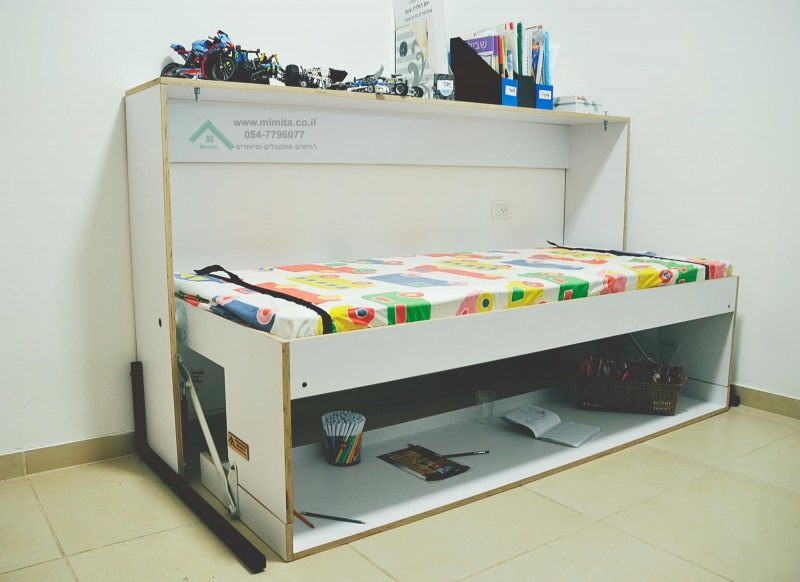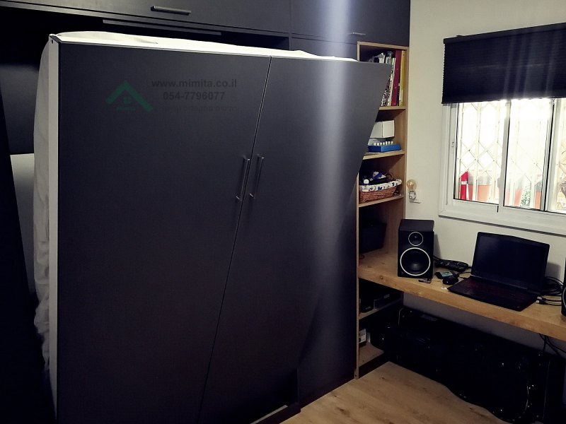 ארון מיטה, מיטות קומתיים מתקפלת, שולחן סלון מתקפל, ארונות הזזה נסתרים.