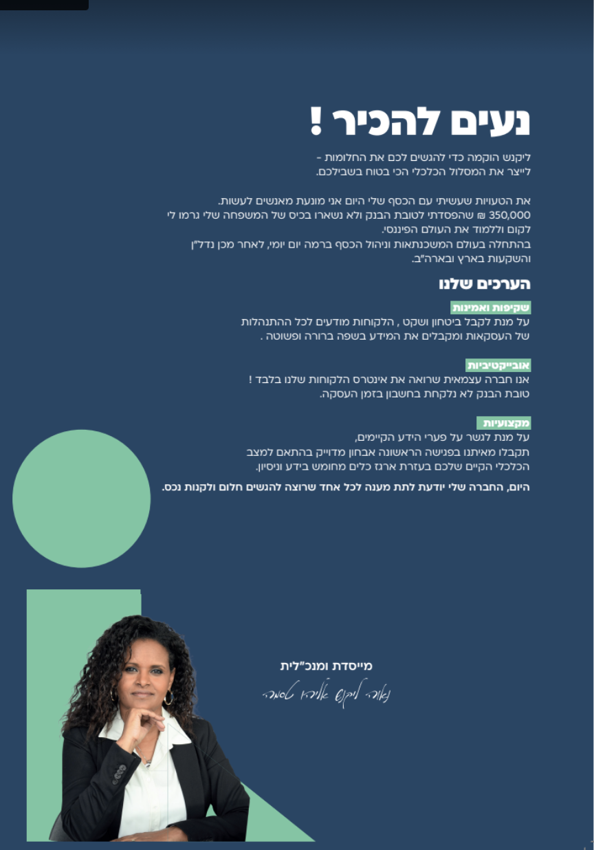 ויחד עם בת אל אליהו , שותפות בעסק המלווה אנשים לחופש כלכלי.