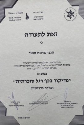שרונה מאור פדיקורסטית בוגרת השתלמות בכף רגל הסוכרתית בחסות אגודה ישראלית לסכרת