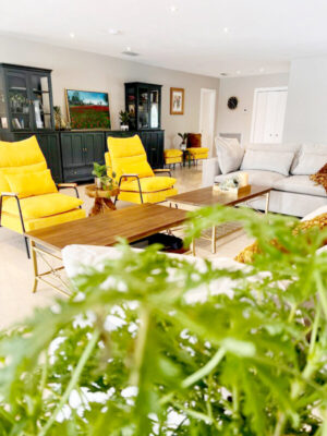 מאחר והמשפחה מאוד אוהבת לארח, דאגנו שהספות יהיו נוחות, מזמינות ומרווחות כך שגם 15 איש יוכלו לשבת עליהן בו זמנית, ובעת הצורך גם יהפכו למיטות (כל כורסא צהובה נפתחת למיטת יחיד, וגם הספה נפתחת למיטה זוגית).